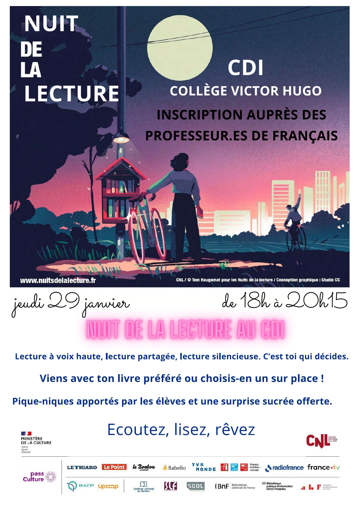 Nuit de la lecture au CDI jeudi 29 janvier de 18h à 20h15